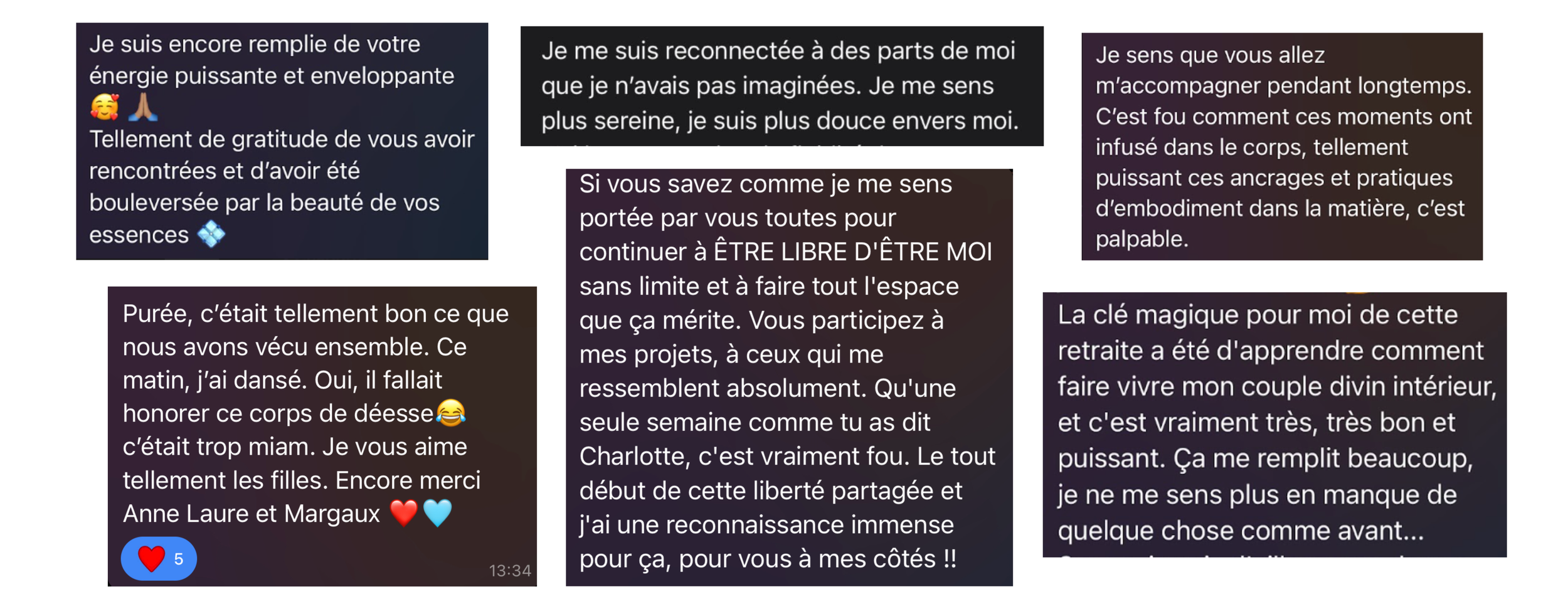 Dans ses retraites, Anne-Laure crée un espace où l’on peut être pleinement soi, explorer ses désirs, habiter son corps et suivre sa sagesse intérieure avec courage, profondeur et légèreté.