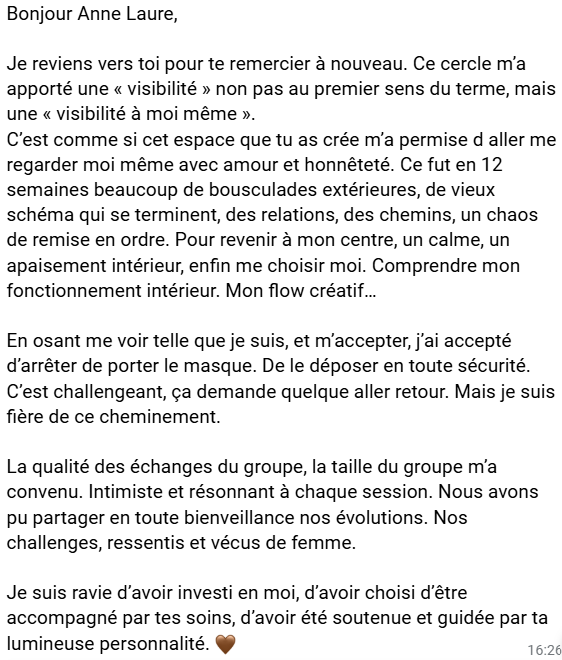 Ce mastermind est une plongée dans l’art d’être vue depuis ton intimité la plus authentique, pour que ta présence, ton art et ta voix et ta médecine touchent le monde sans forcer, sans jouer de rôle, sans te trahir.